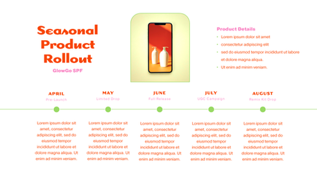 Presentation design is more than slides—it’s the art of organizing information into a clear, compelling story. To protect both the consulting firm’s strategy and the client’s brand, I created a fictional company—Sunlush, a vibrant summer-inspired beauty brand—to showcase a sample of anonymized, on-brand slides. This example captures how I bring structure, style, and storytelling together to support strategy-driven presentations.